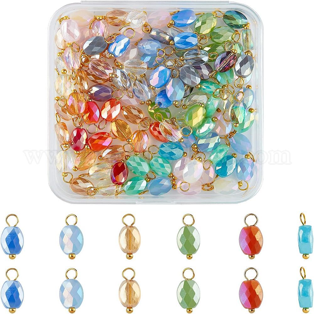 100шт 5 цвета подвески из гальванического стекла, с позолоченными латунными петлями, граненые, овальные