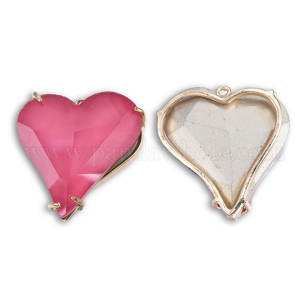 • Ярко-Розовый K 9 стеклянные подвески, с легкой позолоченной латунной фурнитурой, без кадмия и без свинца, граненые, сердце, ярко-розовый, 26.5x26.5x7.5 мм, отверстие : 1.2 мм