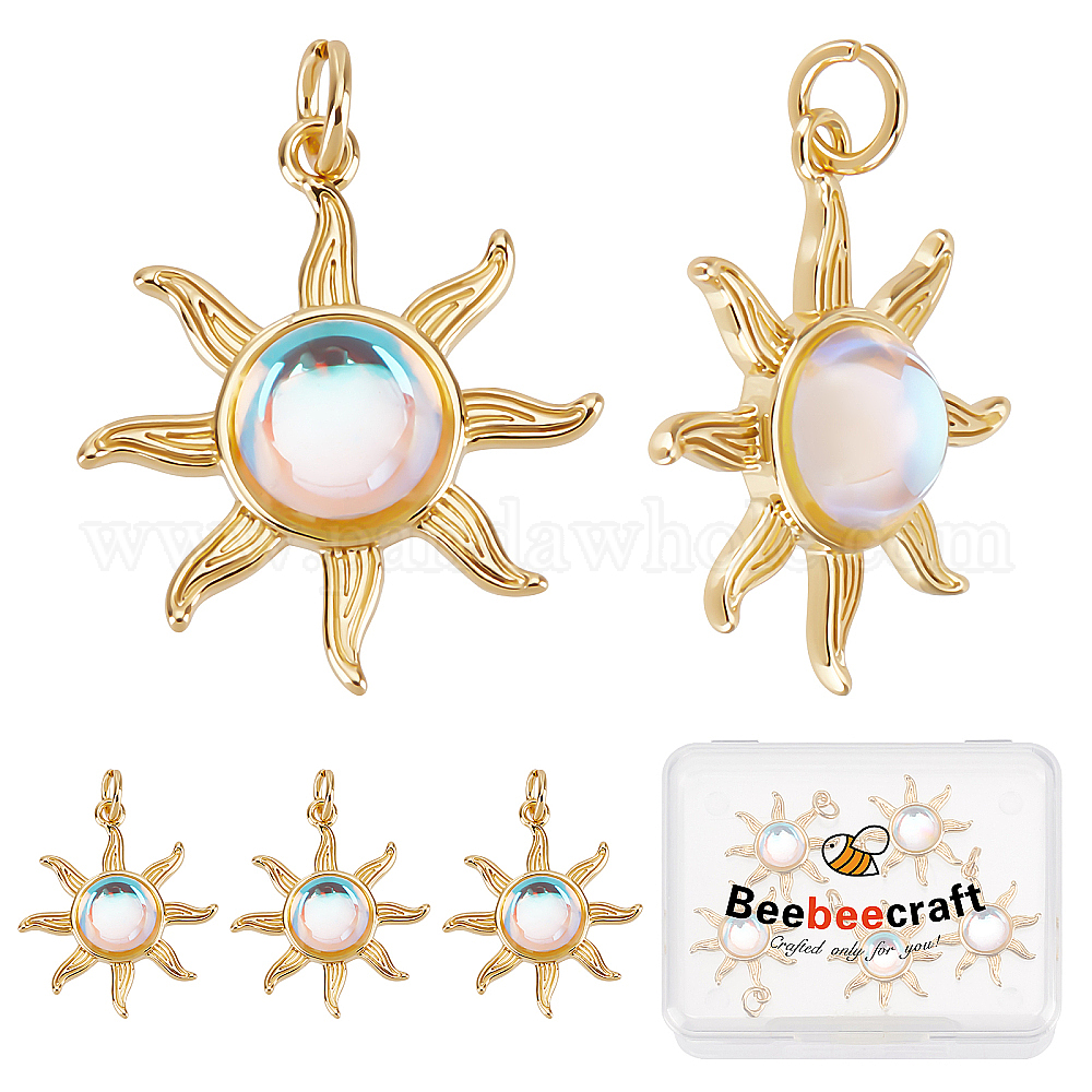 Стеклянные подвески, с латунной фурнитурой и прыжковым кольцом, без кадмия и без свинца, солнце