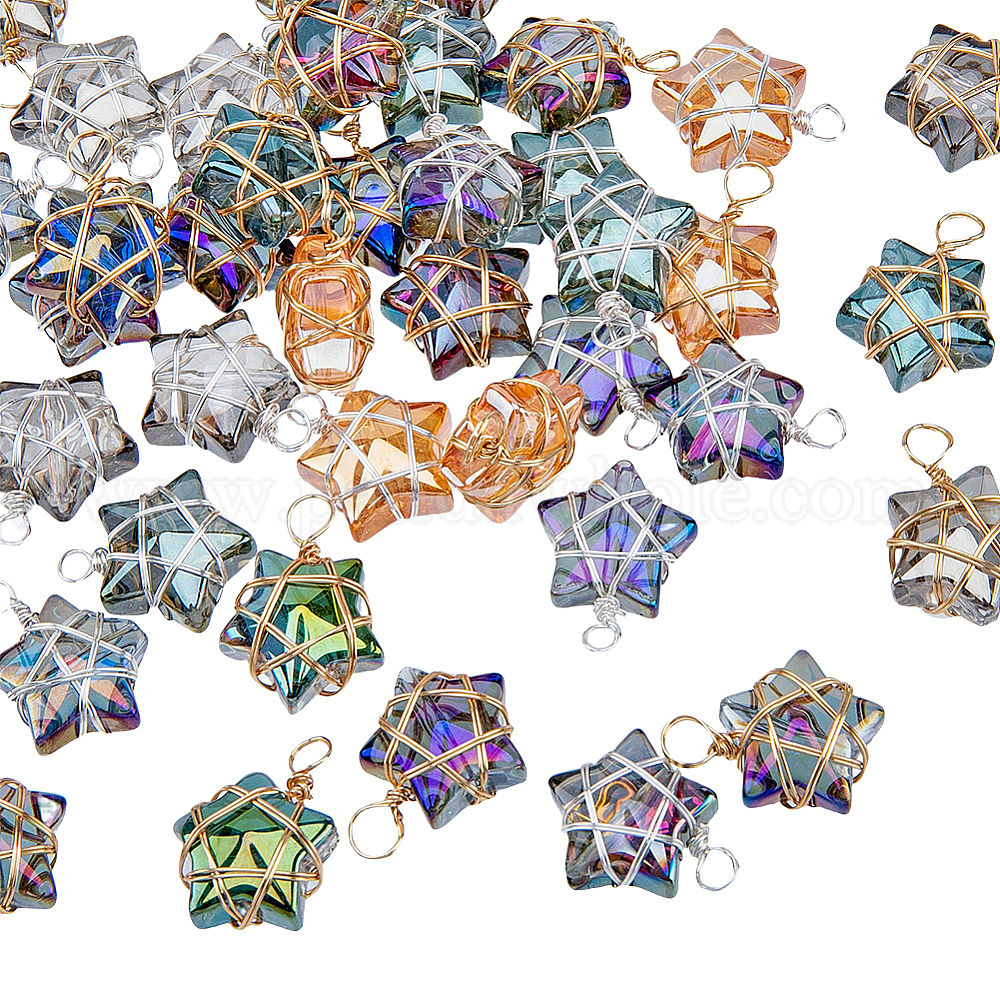 40 шт. 2 цвета проволочные обернутые гальваническим способом стеклянные подвески, звезда