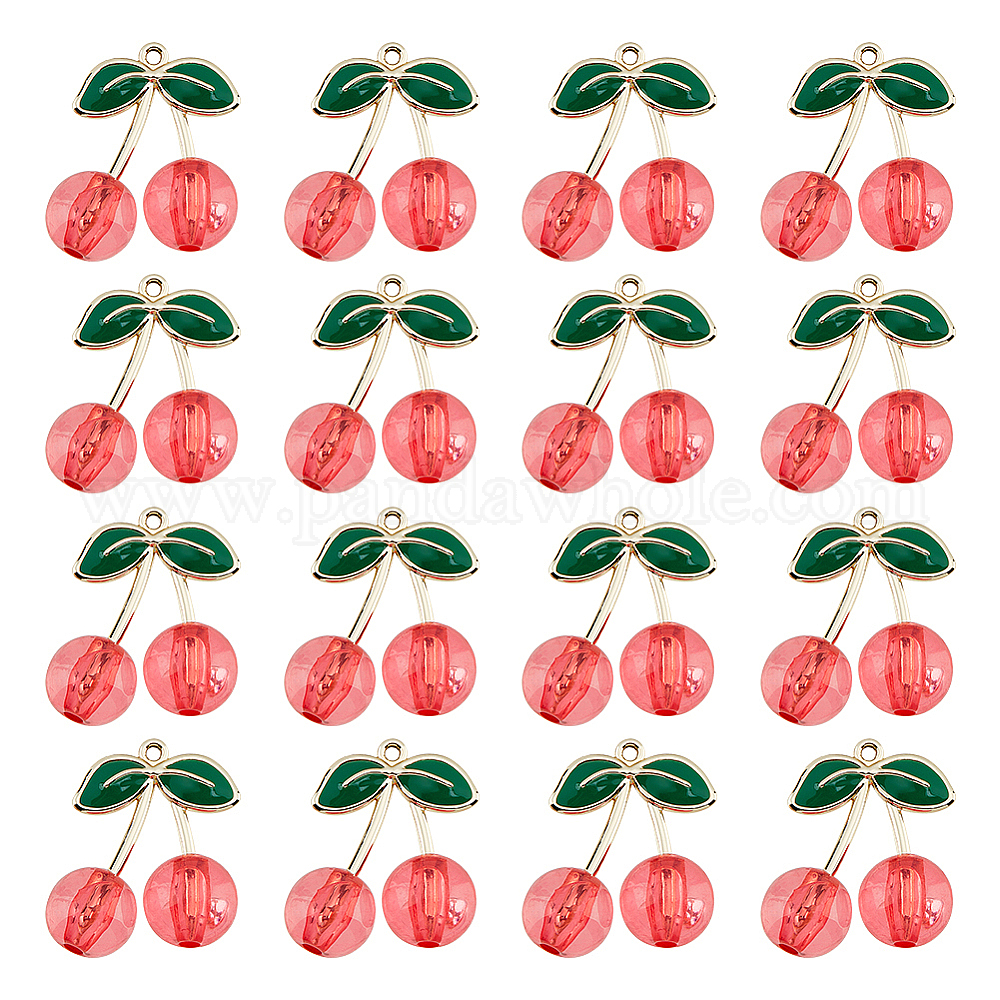 16 шт. Стеклянные подвески, со сплавочной фурнитурой, вишня, золотой свет