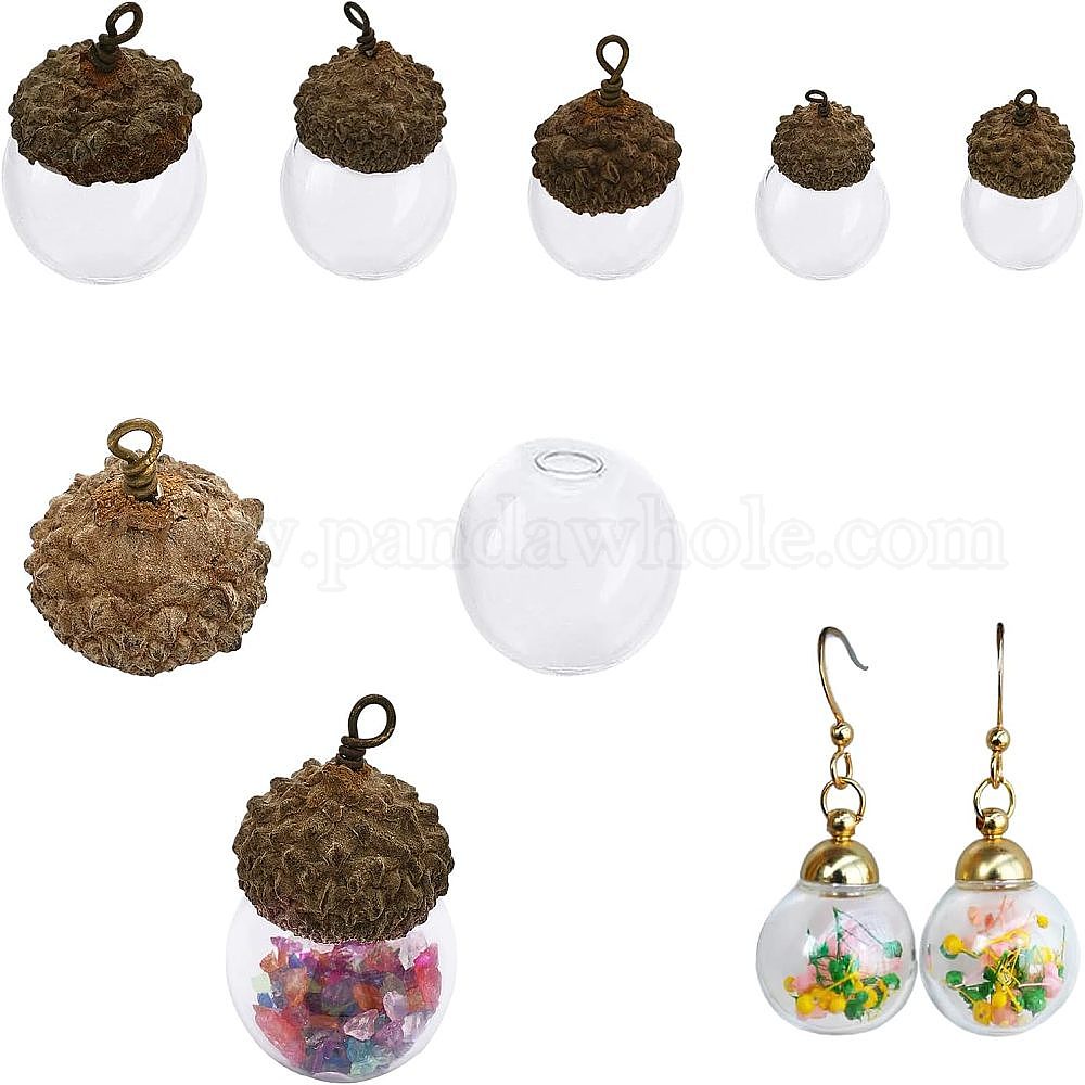 5 наборы 5 подвески в виде стеклянных шаров, с натуральной скорлупой желудя, осенняя тема