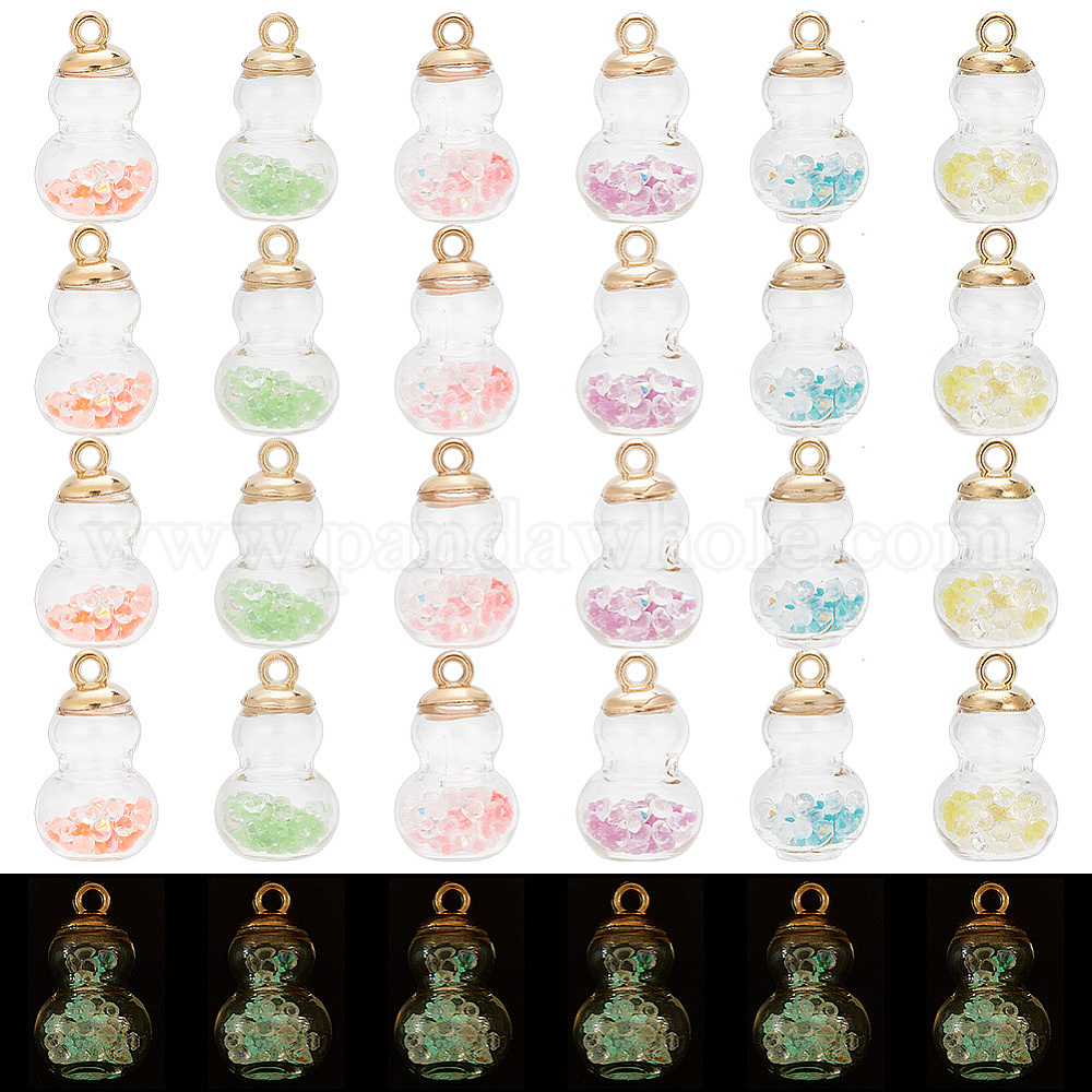 48шт 6 цвета светящиеся стеклянные подвески, с золотыми пластиковыми подвесками, Горлянка (02GAXX)