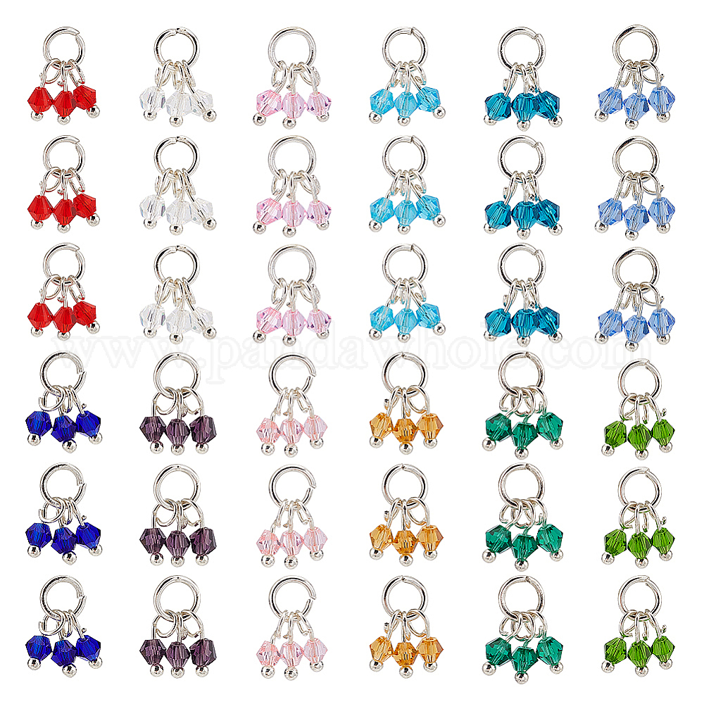 48шт 12 цветное стекло, имитирующее австрийский хрусталь, биконические подвески из бисера, с шаровыми штифтами из платиновой латуни и железным прыгающим кольцом (02GRK9)
