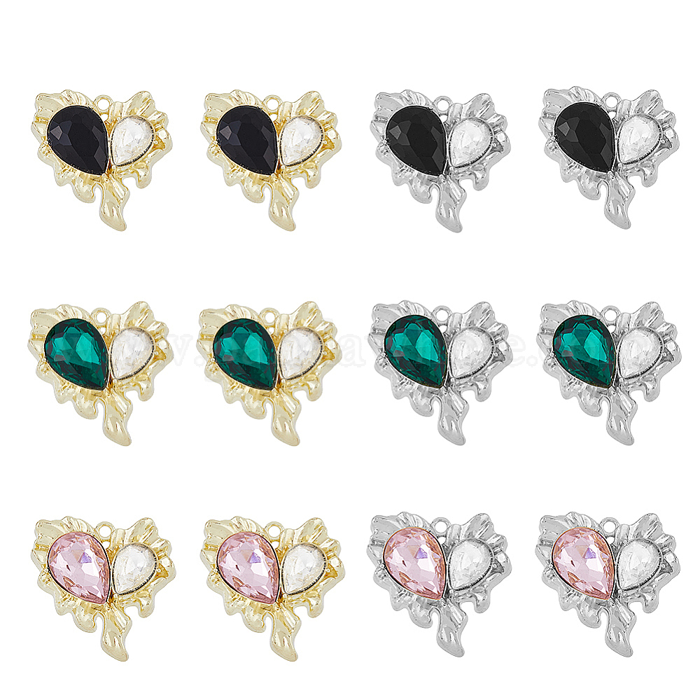 12шт 6 цветная стойка покрытие сплав со стеклянными подвесками, сердце с подвесками в виде слезы, без кадмия, без никеля и без свинца