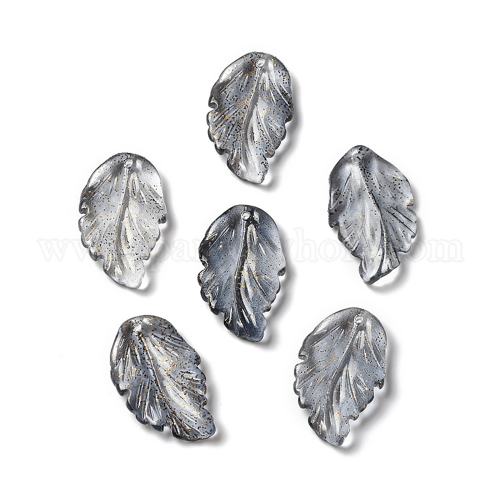 Подвески из окрашенного и нагреваемого стекла, с блеском порошок, перо лист