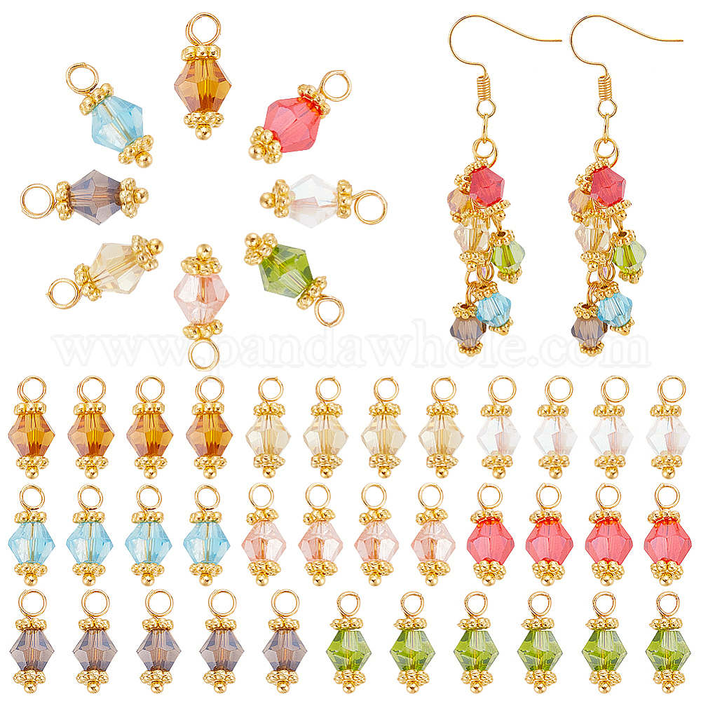 160шт 8 цвета подвески из гальванического стекла, двуконусные подвески с латунными петлями золотистого цвета