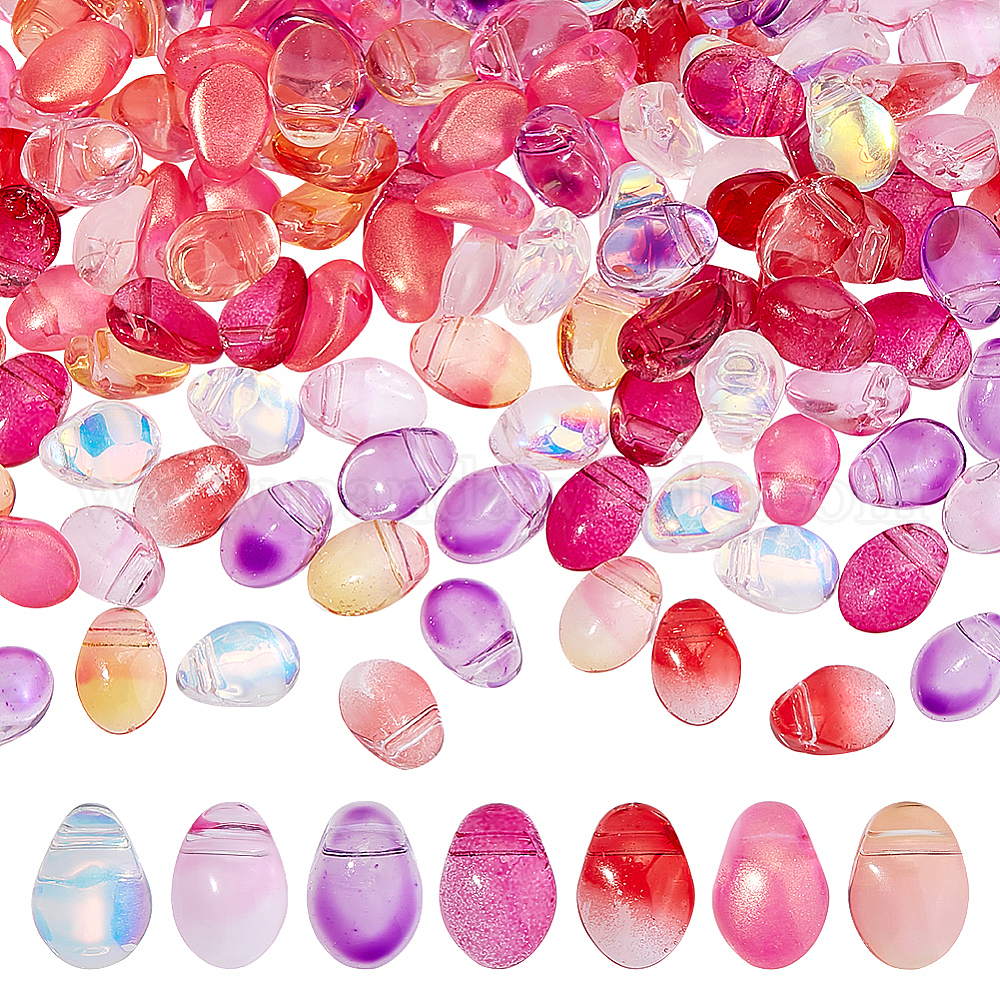 стеклянные брелоки: около 8 мм в длину, шириной 6 мм , толщиной 4 мм , отверстие : 1 мм, 7 цветов, 20 шт / цвет, 140 шт;