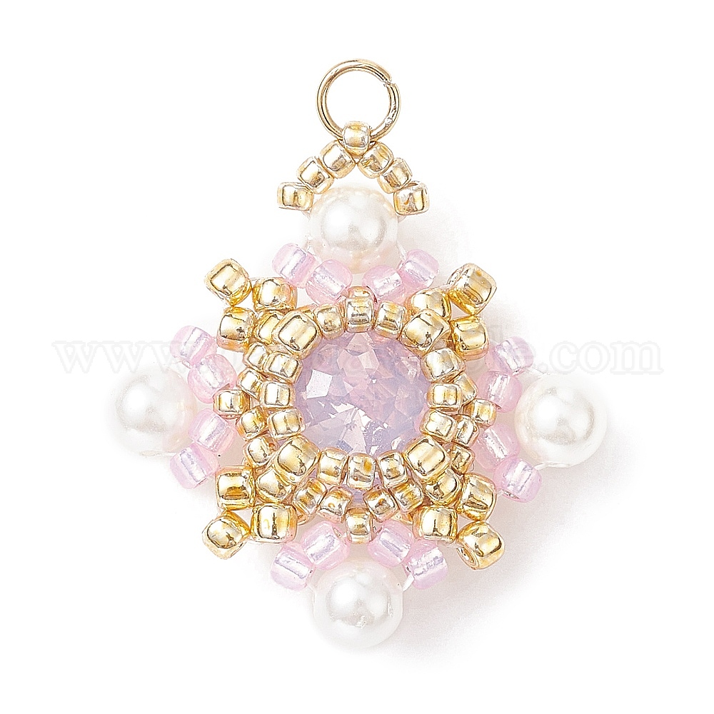 K9 подвески из стекла, ракушек, жемчуга и семян, плетеные, ромб прелести