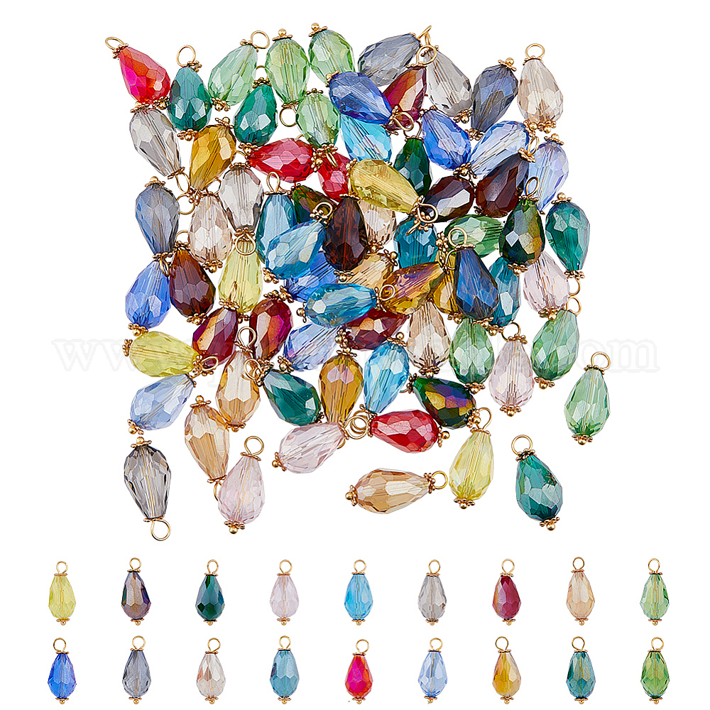 90шт 18 цвета подвески из гальванического стекла, граненые подвески-капли золотистого цвета 304 петли из нержавеющей стали