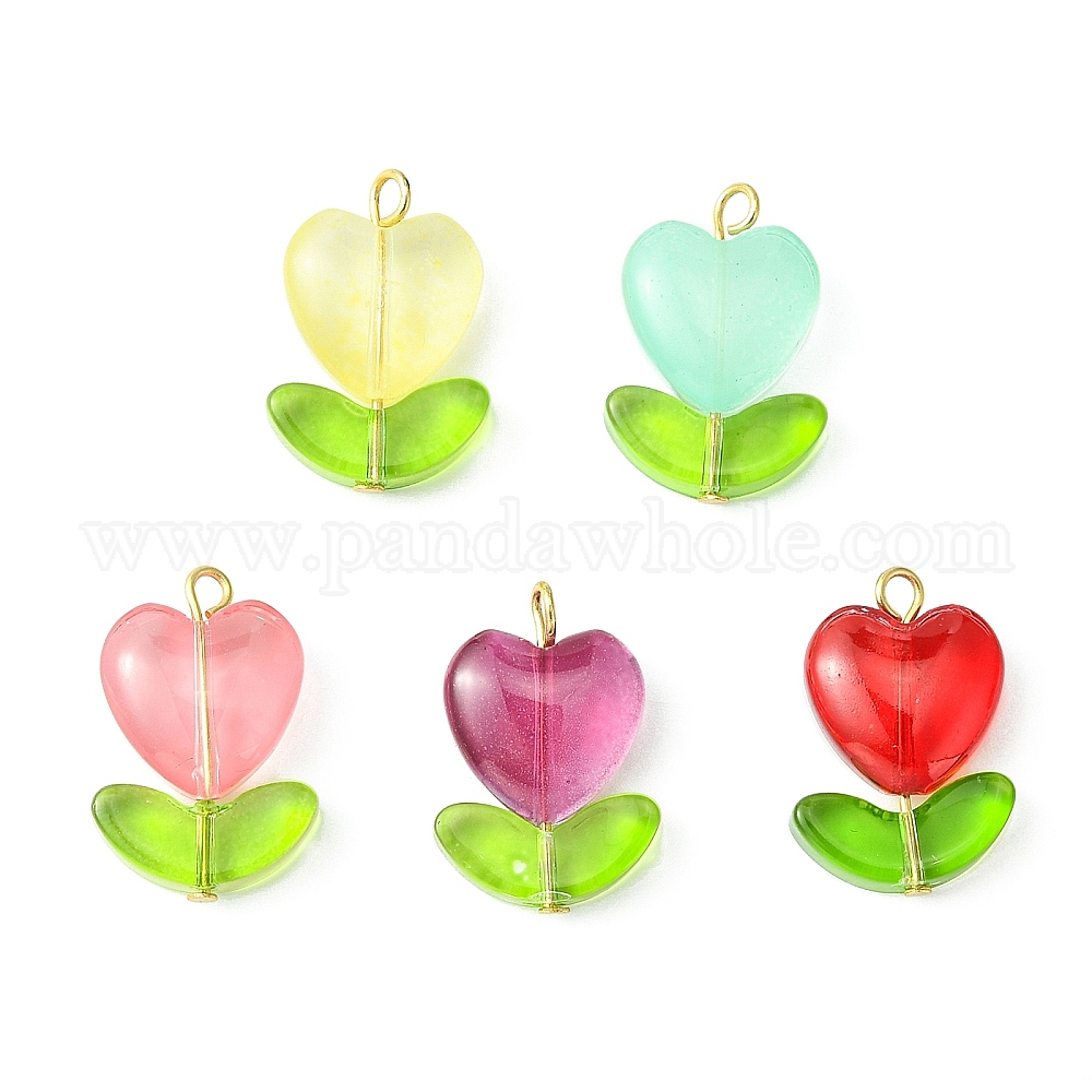 Стеклянные подвески в виде сердечек, цветов и листьев, с золотым оттенком 304 петли из нержавеющей стали