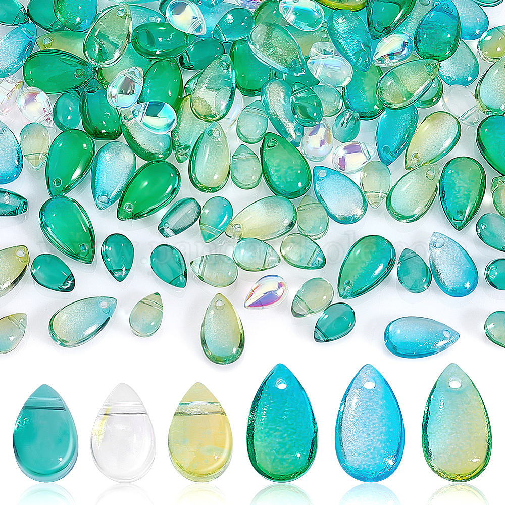 120 шт 6 цвета прозрачные стеклянные брелоки, окрашенная и подогревом, слеза