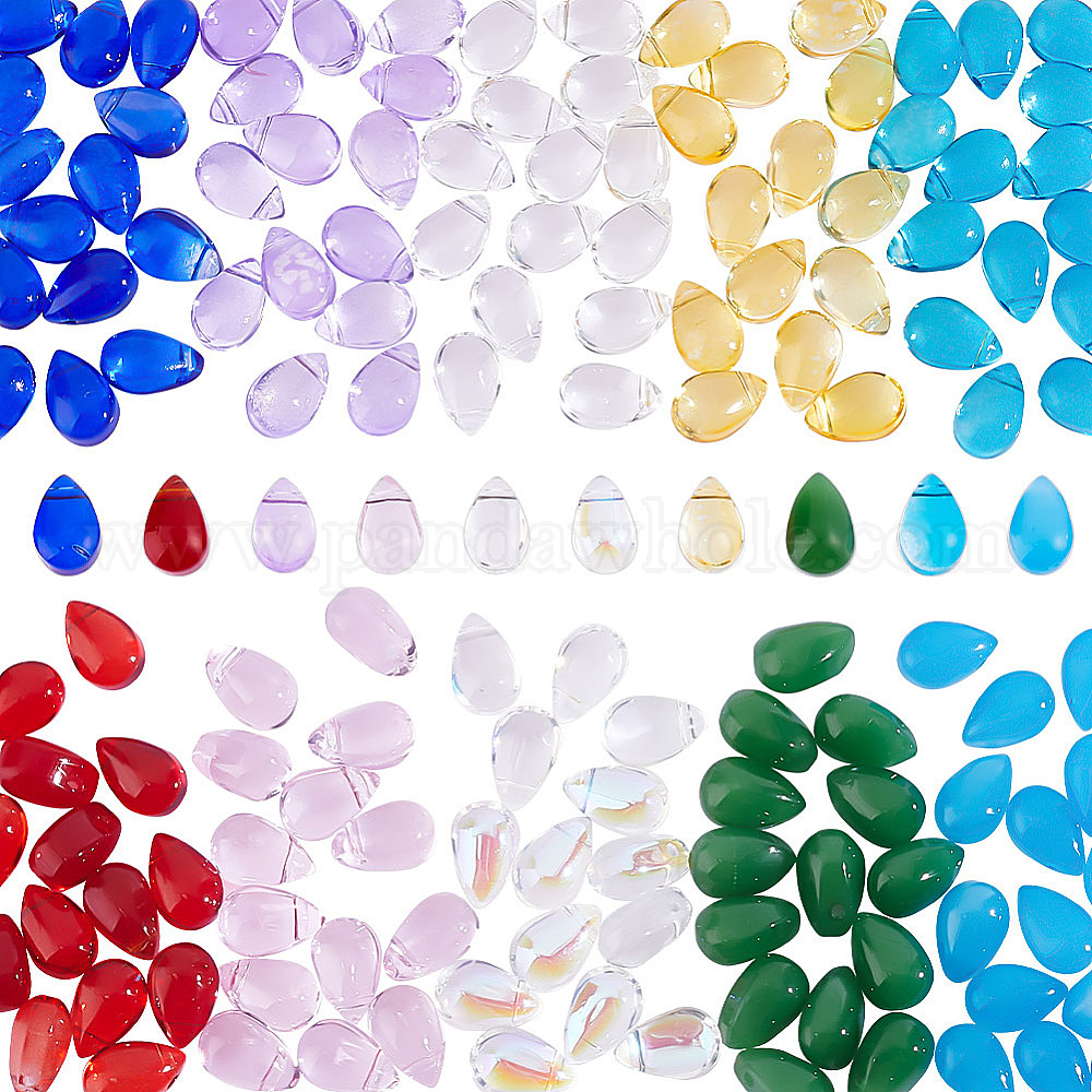 стеклянные подвески, Подвески-капли: около 9x5.5x4.5 мм, отверстие : 1 мм, 5 цветов, 14 шт / цвет, 70шт;