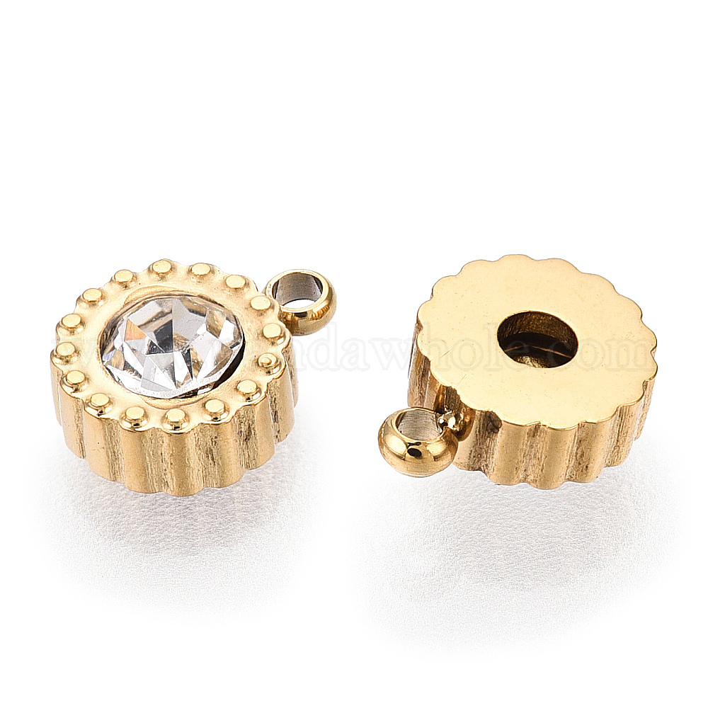 Ионное покрытие (ip) 304 брелоки из нержавеющей стали, со стеклом, плоский круглый шарм