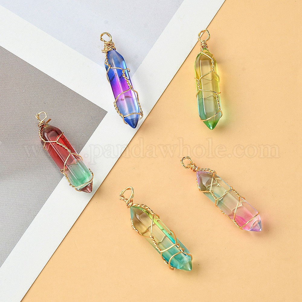 5 шт 5 цвета стеклянные подвески, с выводами из светло-золотой медной проволоки, пулевые чары