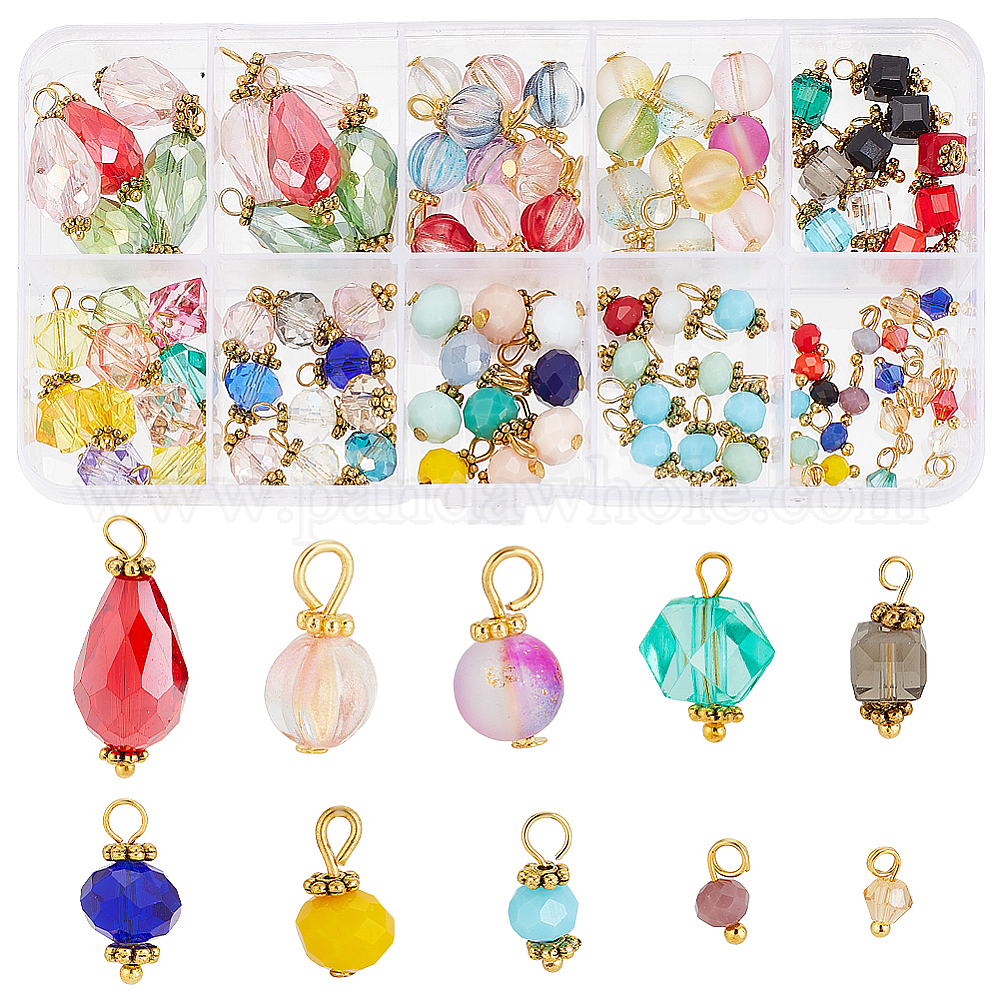 100шт 10 стиль стеклянные подвески наборы, рондель, куб, многоугольник, биконус, тыква и круглый (02PQ5R)