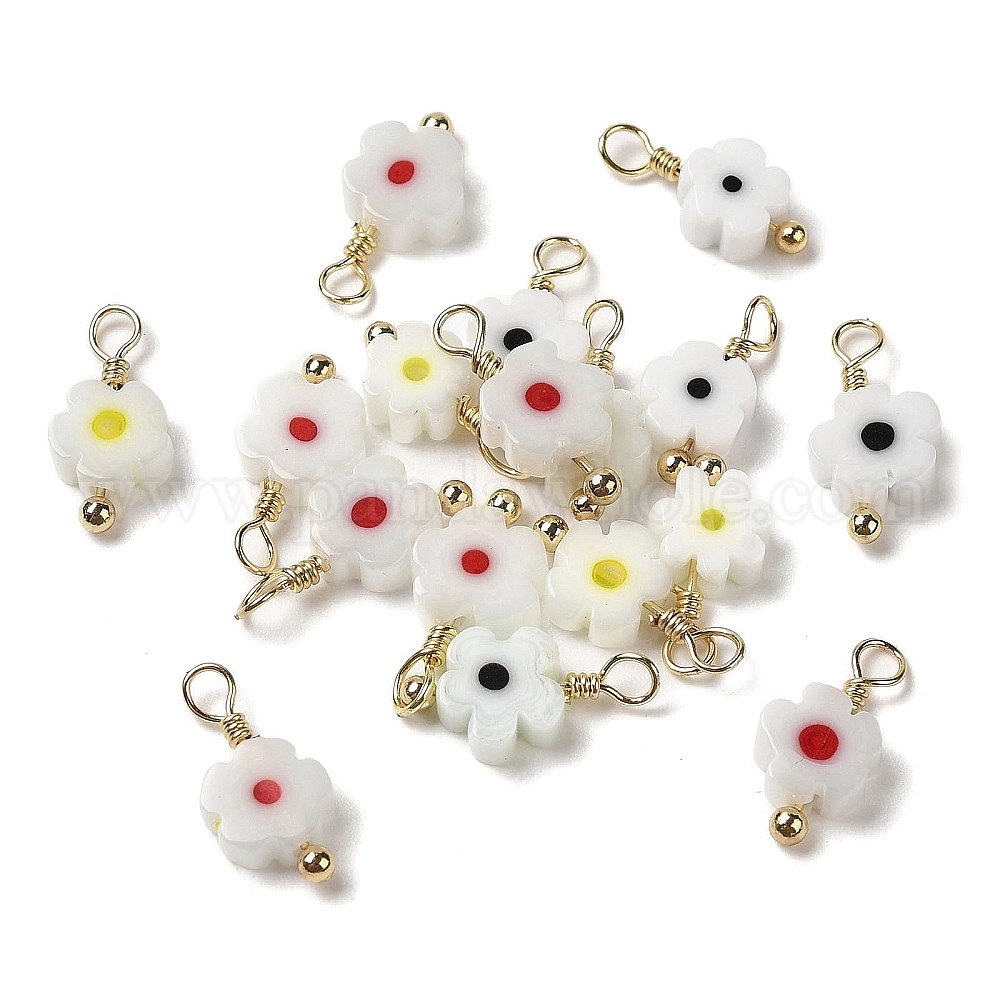 Стеклянные прелести, с петлей из латуни, покрытой настоящим золотом 18k, цветочный шарм