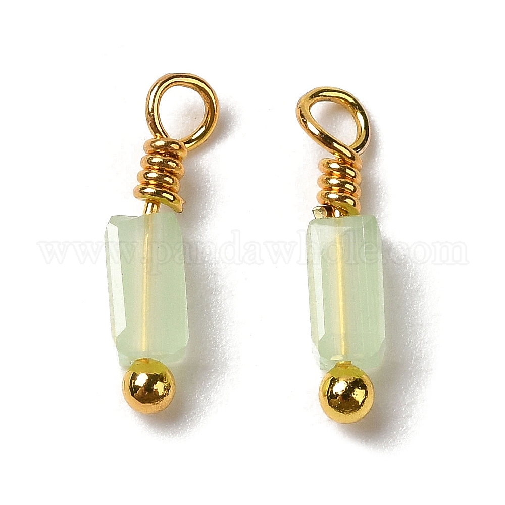 Имитация нефрита стекла прелести, с петлей из латуни, покрытой настоящим золотом 18k, прямоугольный шарм