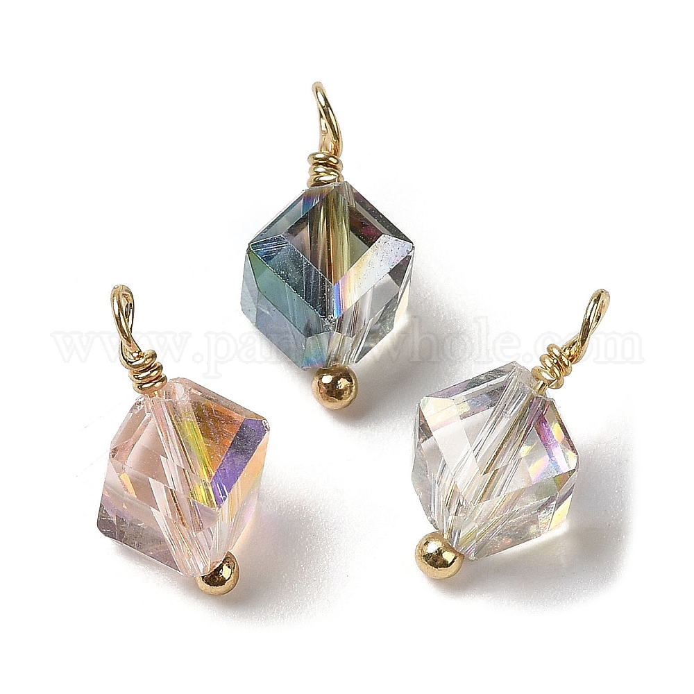 Гальванические стеклянные подвески, с петлей из латуни, покрытой настоящим золотом 18k, подвеска в виде граненого диагонального куба