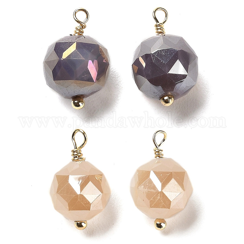 Стеклянные подвески, с покрытием стойки, петли из латуни с покрытием из настоящего золота 18k, граненые круглые подвески (02Q1HQ)