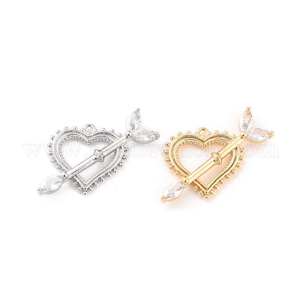 Латунные подвески, из прозрачного стекла, сердце со стрелами