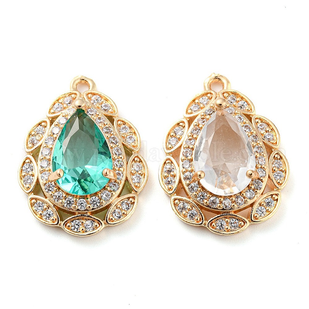 Золотые латунные микро проложить кубического циркония подвески, со стеклом, слезинки