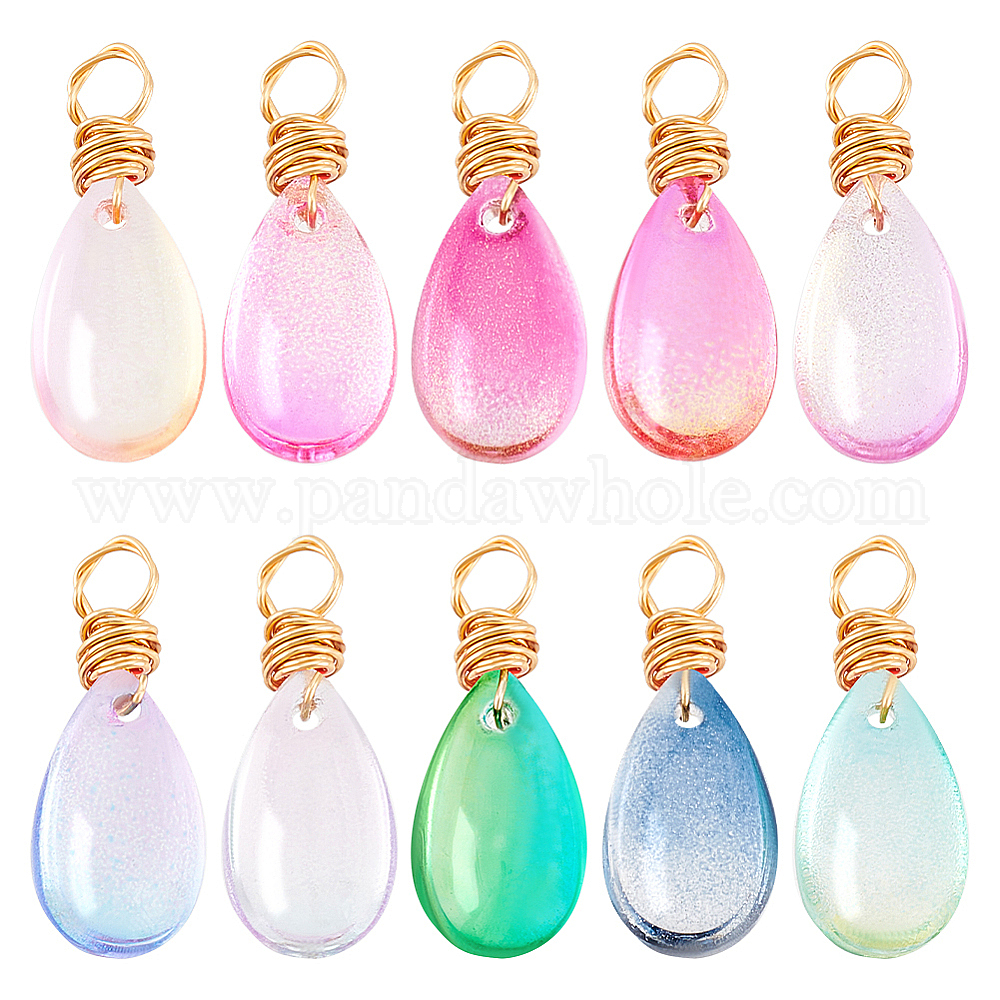 60 шт. 10 цветные стеклянные подвески с медной проволокой, слезинки