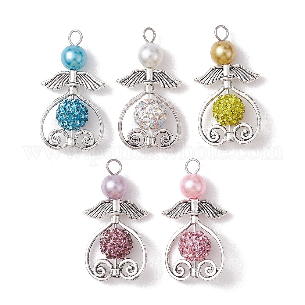 5 шт. 5 цвета стеклянные подвески с жемчугом, с полимерной глиной горный хрусталь и шарики сплава, ангельские прелести