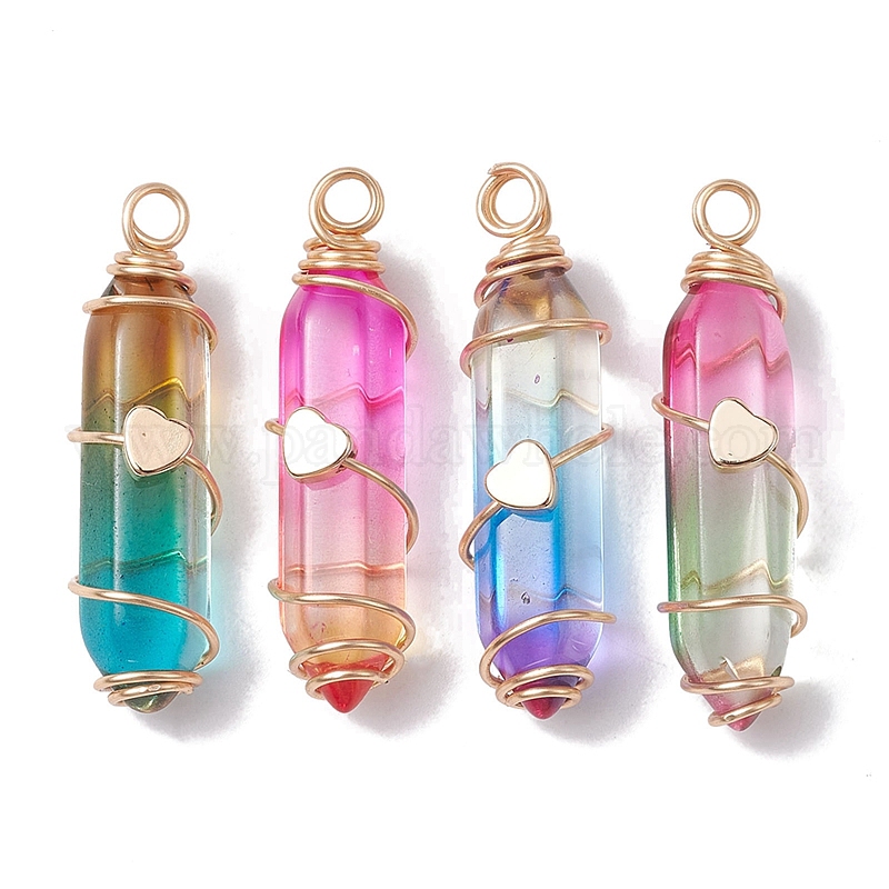 Стеклянные латунные подвески, форма пули с подвеской в виде сердечка