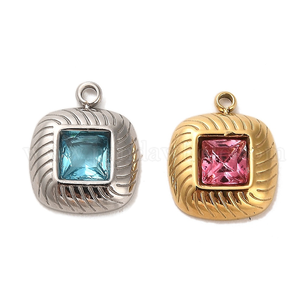 304 подвески из нержавеющей стали, со стеклом, квадратных амулеты