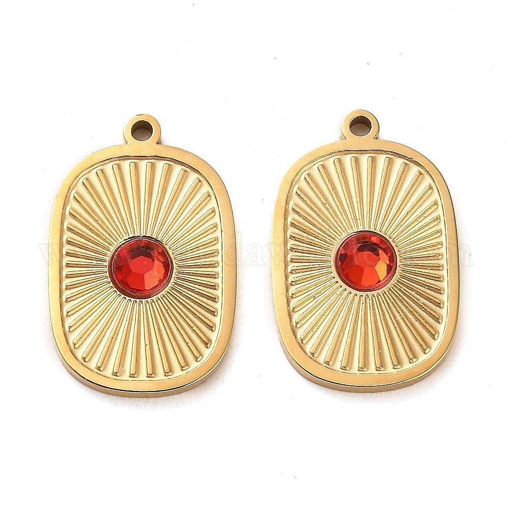 • Настоящее золото 14K 304 подвески из нержавеющей стали, с красным стеклом, прямоугольник амулеты, реальный 14 k позолоченный, 18x11.5x2.5 мм, отверстие : 1.2 мм