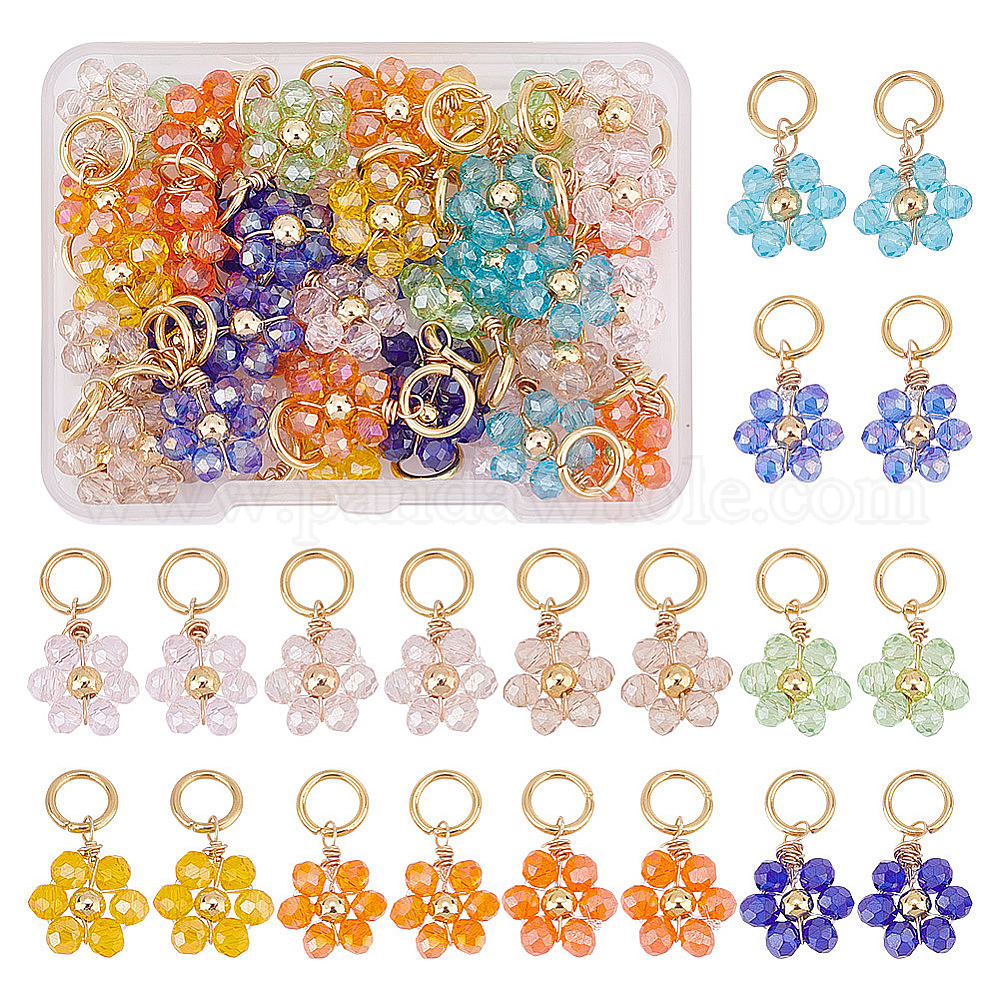 40шт 10 цвета подвески из гальванического стекла, с латунными бусинами и 304 открытыми переходными кольцами из нержавеющей стали.,