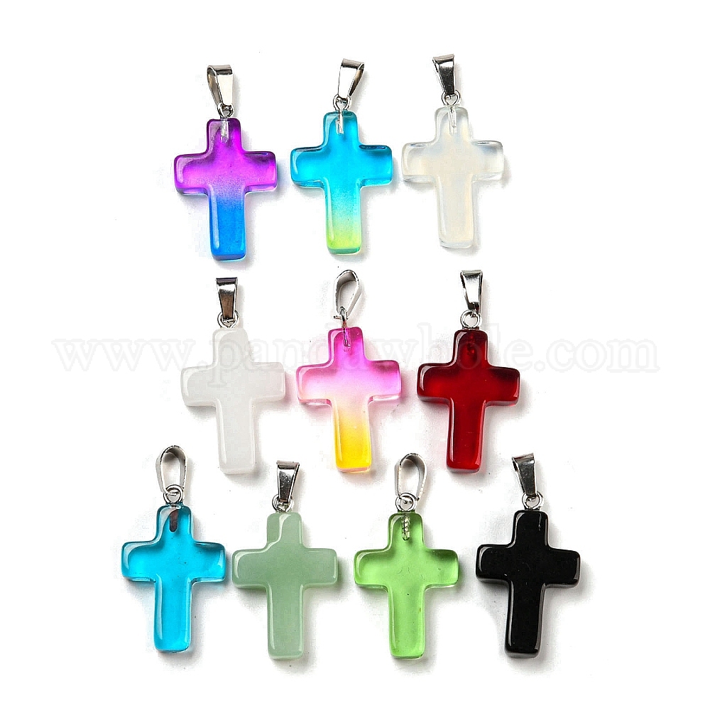 Стекло подвеска, с фурнитурой платина железная, крест прелести