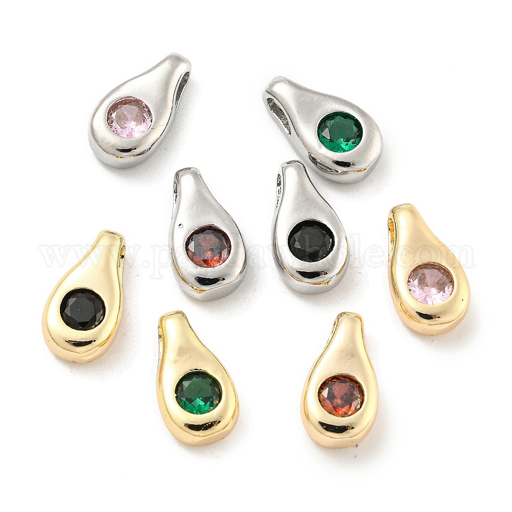 • Платинированный Латунь стекло кулоны, слезинки, Реальная платина, 11x6x3.5 мм, отверстие : 3.5x1.5 мм
