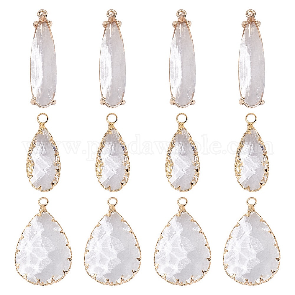 12шт 3 стили латунные стеклянные подвески, граненые, слеза, реальный 18 k позолоченный