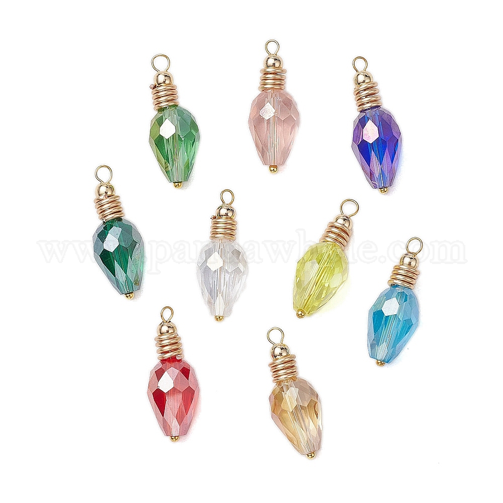 9 шт. гальванические стеклянные бусины подвески, с латунной найти, слеза, золотой свет