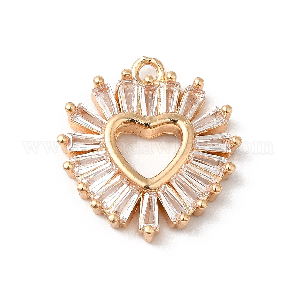 • Золотой Латуни кулон, со стеклом, сердце, золотые, 15x14x2 мм, отверстие : 1.2 мм