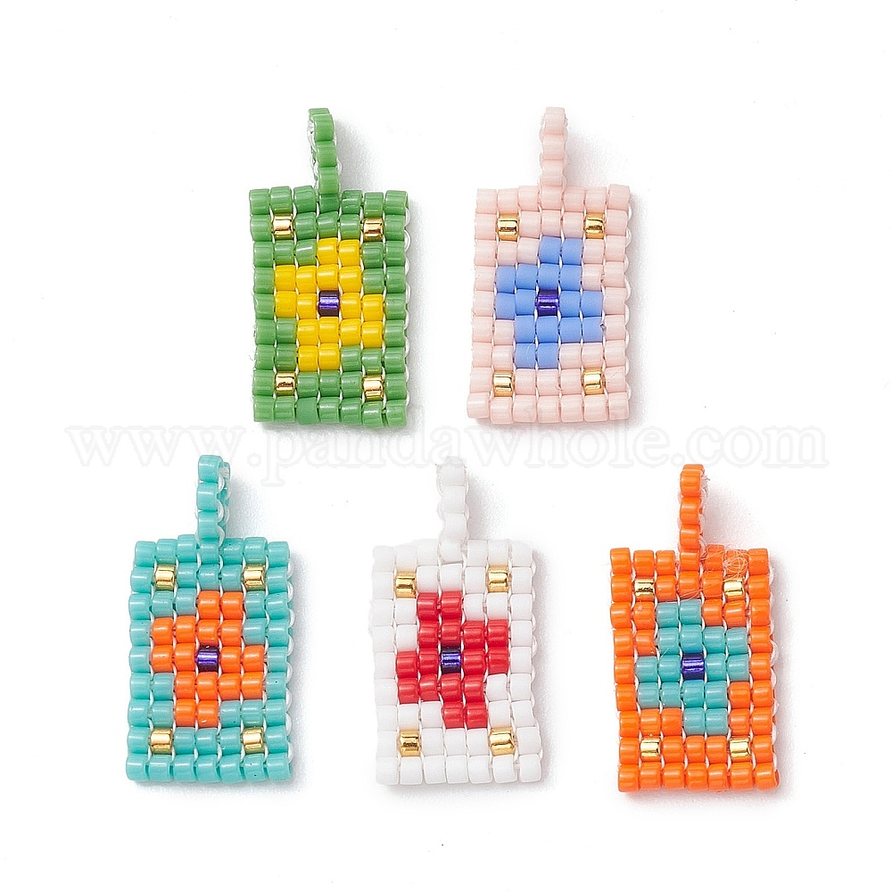 • (52) Непрозрачная лаванда Бисер подвески из бисера, прямоугольник с узором «глаз ветра», разноцветные, 20x10x1.5 мм, отверстие : 2 мм