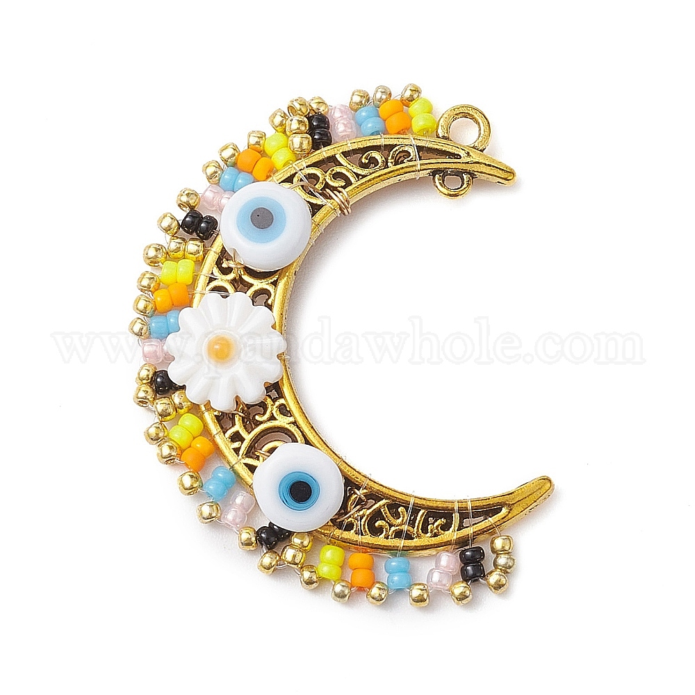Подвески из стеклянных семян, лэмпворка и натуральных пресноводных ракушек, луна со сглазом и цветком, красочный