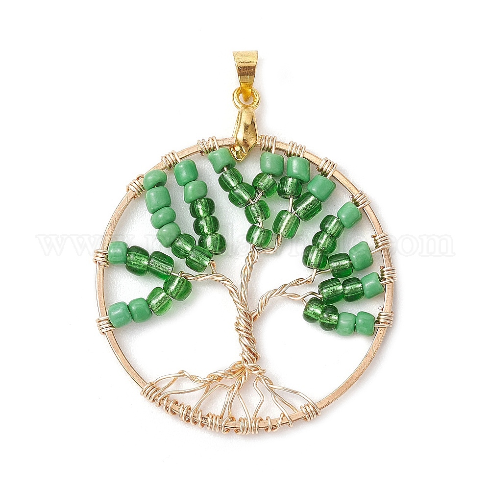 Латунные подвески со стеклянными бусинами, кольцо с узором «Древо жизни», зелёные