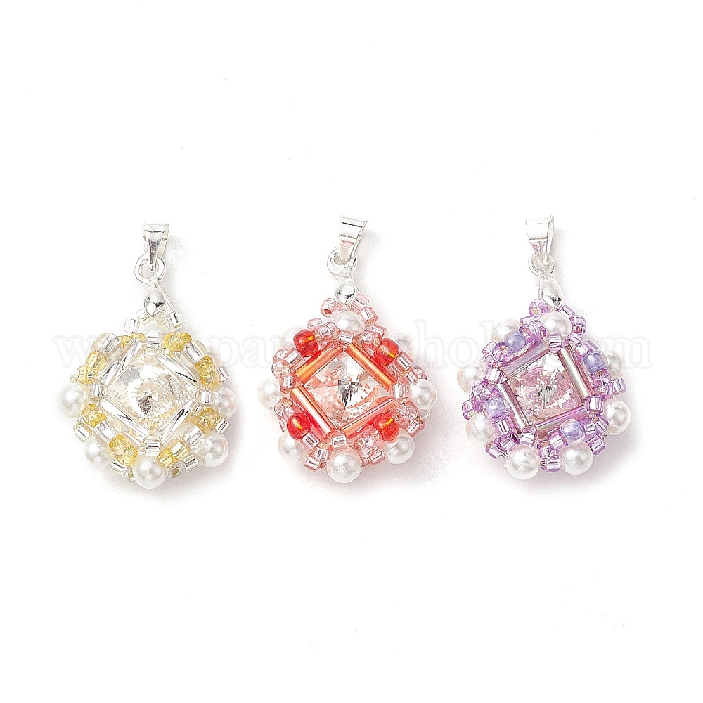 Стеклянные стразы с подвесками из акрилового жемчуга, цветок, серебряные