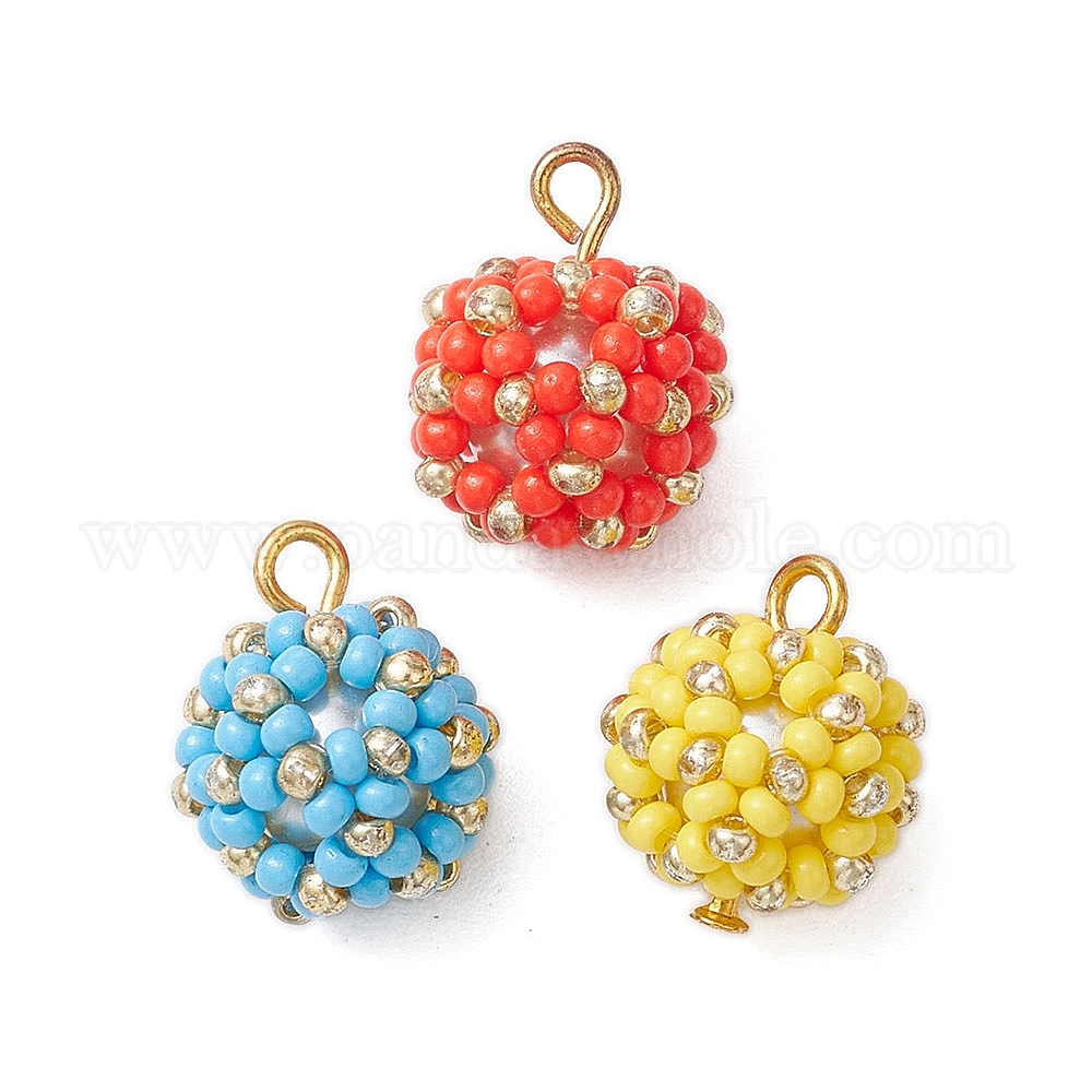 Бисер бисерные подвески, подвеска в виде цветочного шара, с железной петлей