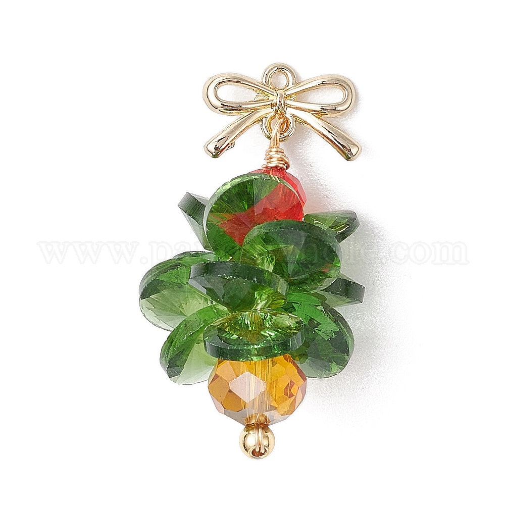 Стеклянные подвески на рождественскую тематику, с латунной фурнитурой в виде банта, рождественская елка