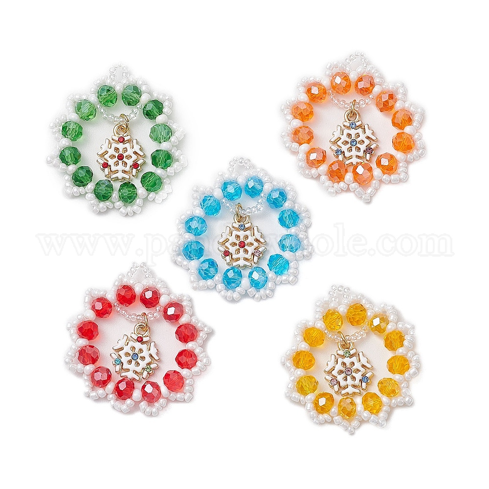 Подвески из гальванического стекла на рождественскую тематику, с бисером, Рождественский венок