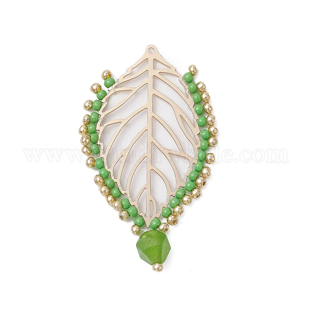 Подвески из бисера, с натуральным белым нефритом, лист