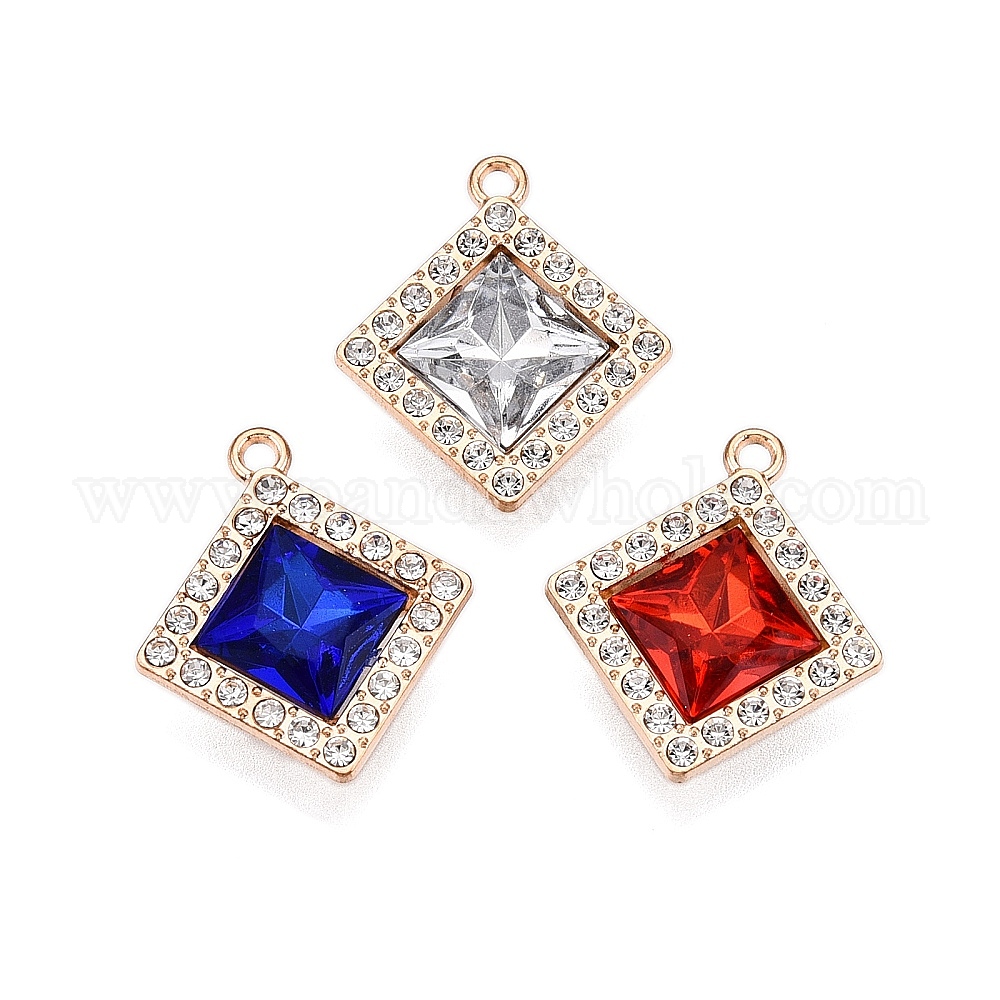 Сплав стекла подвески, со стразами, без кадмия и без свинца, ромб прелести