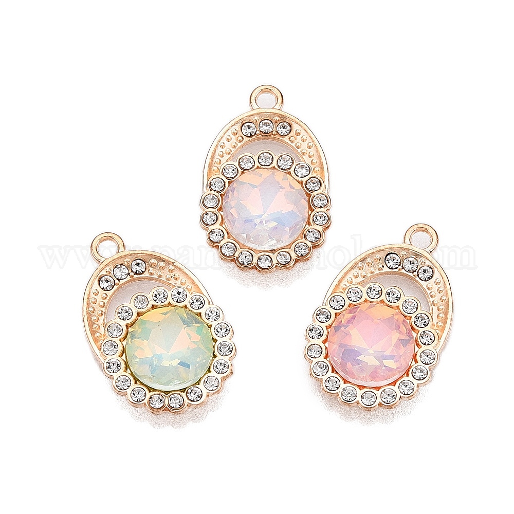 Сплав стекла подвески, со стразами, без кадмия и без свинца, овальные амулеты