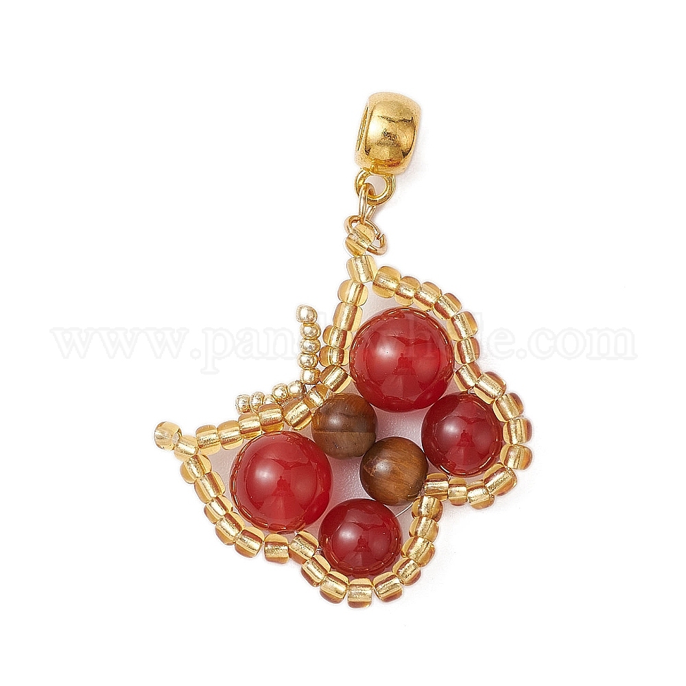 Бисер бисерные подвески, с бусинами из натурального сердолика и натурального тигрового глаза, бабочки подвески (02XP8C)
