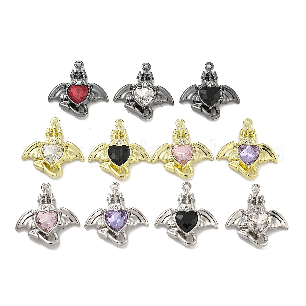 Подвески из сплава и стекла для стойки, без свинца, без кадмии и без никеля, демон с сердечными чарами (02XWHQ)