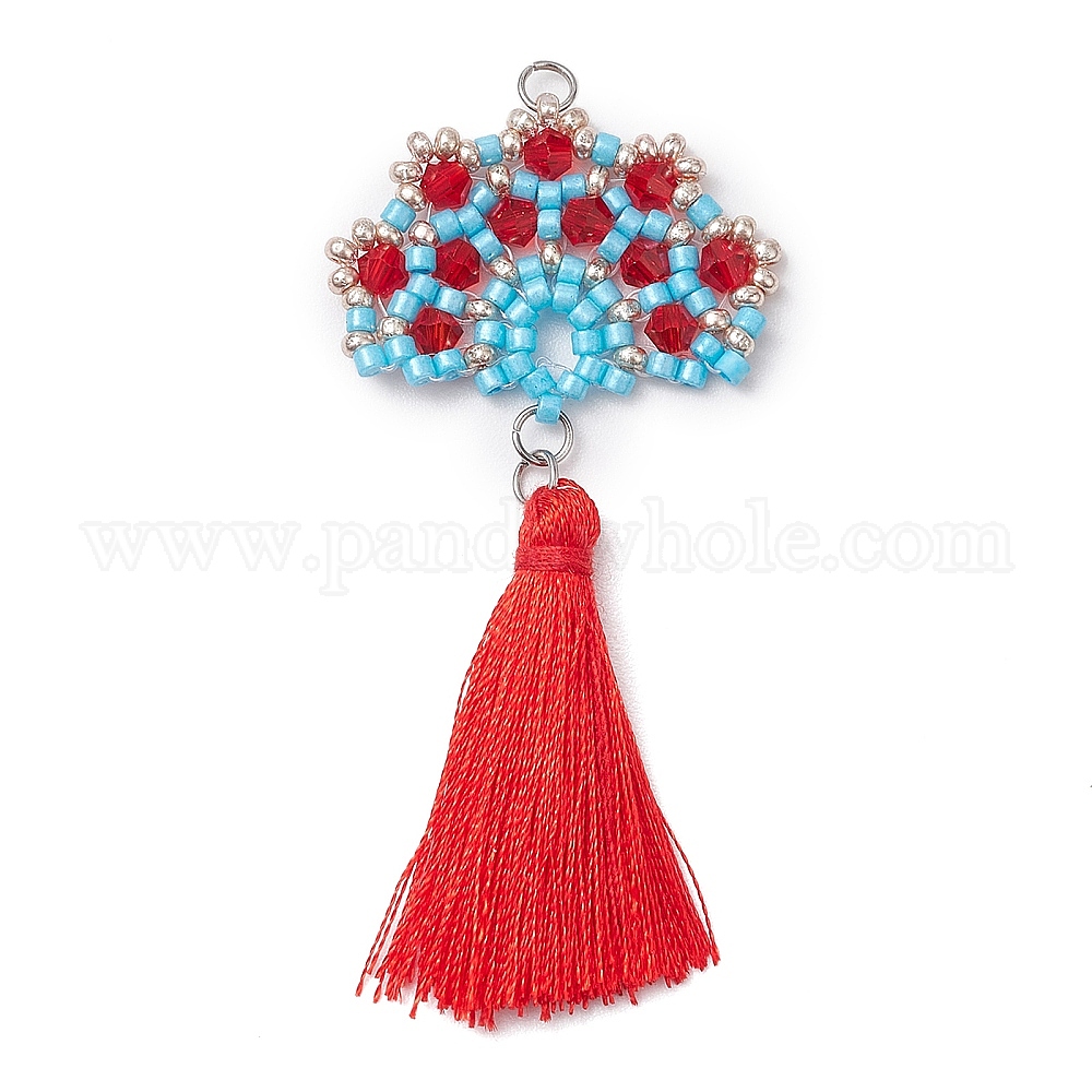 Большие подвески из стекла ручной работы в виде веера из семян, с соединительным кольцом и полиэстеровой кисточкой